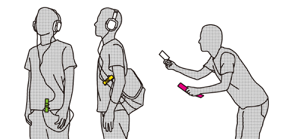 バッグや洋服などに取り付けられる便利なマグネットタイプで、コードを巻いて長さの調節が可能です。