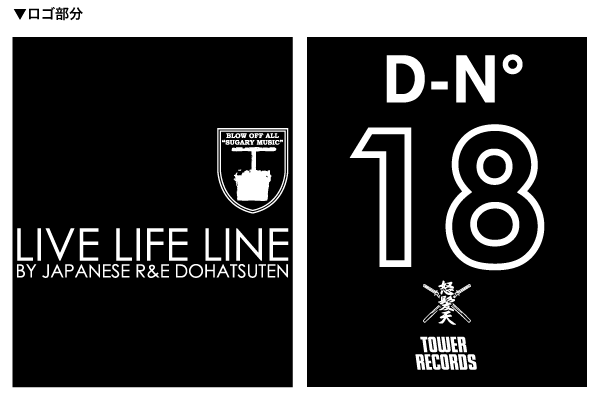 現在の音楽業界に一言もの申すメッセージが込められております。バックはコラボレーションを象徴した怒髪天ロゴとタワレコロゴ、そしてアルバムタイトルにも使用している18(オハコ)を背番号に見立ててレイアウトしたスペシャルTeeの完成です!