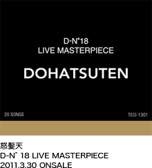 1991年、アルバム『怒髪天』でデビュー。セールスもライヴ動員も右肩上がりで増え続け、ロックフェスでも絶大な人気を誇るなど、結成25年越えのバンドとしては異例のブレイク状態が今なお続行中。3月30日にライブ定番楽曲の完全コンプリートアルバム『D-N°18 LIVE MASTERPIECE』を発売。5/14(土)新宿ロフトを皮切りに7/10(日)ZEPP TOKYOまで全22公演のLIVE LIFE LINE TOURも決定。