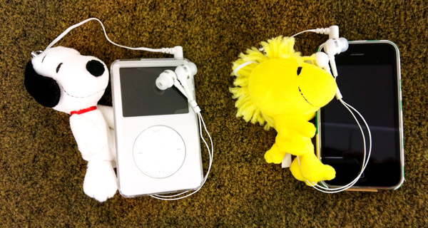 スヌーピー、ウッドストックのお尻のところにイヤホン部分が収納でき、お好みの長さにコードを調整することもできます。