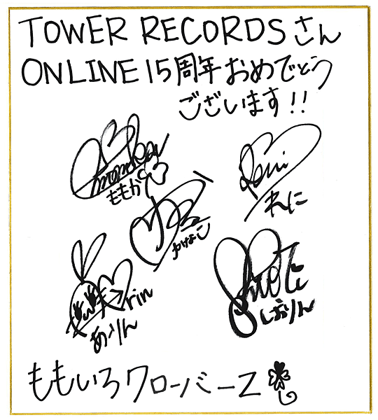 タワーオンライン15周年おめでとうございます。意外とHMV臭が強いももクロですが、CDが出るとTOWER RECORDS渋谷店の窪田さんのところに通わせて頂いてます。