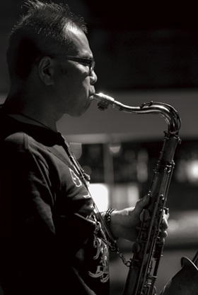 ジャズは、自分を解放し、そして他者を解放する音楽だと、竹内直は、さらっと言いのけた。もっともこれは、ジャズだけではなく、あらゆる音楽の効用と言えるかも知れない。けれど竹内直が、最初にジャズにのめりこんだとき、他の音楽に比較して、明らかにジャズはそういう魅力を強烈に放っていて、それこそが竹内直の音楽の始まりということになる。
