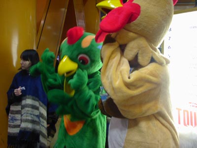 bloodthirsty butchers、タワレコ渋谷店前に来襲(鳥の着ぐるみで)