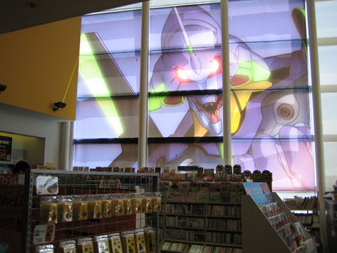 なお渋谷店1Fでは、雑誌「CUT」2009年8月号に掲載された書き下ろしイラストのパネルをはじめ、全長2mのエヴァンゲリオン初号機フィギュア、綾波レイと式波・アスカ・ラングレーの等身大フィギュアを並べた大規模な展示を6月7日まで実施。新宿店10Fには、巨大初号機タペストリーを6月30日まで掲示します。こちらもお見逃しなく!