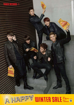 11月19日よりタワーレコード全店でスタートした〈A HAPPY WINTER SALE〉。AKB48(篠田麻里子、前田敦子、板野友美)、ザ・クロマニヨンズ、平井堅、2PM、BUMP OF CHICKENがメイン・ヴィジュアルに登場していることも話題の同セールですが、TOWER RECORDS ONLINEの特設ページでは、それぞれのアーティストのここでしか見ることができないカットを期間限定で公開中! 本日より韓国出身の男性6人組グループ、2PMの画像がアップされています。