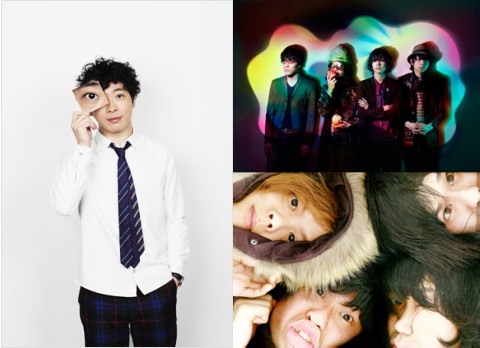 左から時計回りに堂島孝平、オワリカラ、ザ・ビートモーターズ