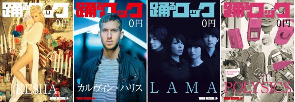左から、ケシャ、カルヴィン・ハリス、LAMA、POLYSICS〈踊るロック〉冊子 表紙画像