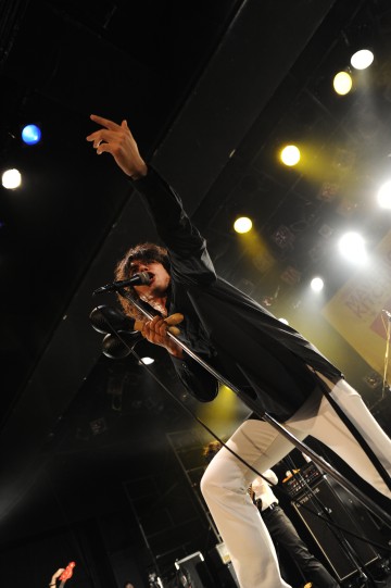 この日のトップバッターは、昨年の〈MAVERICK KITCHEN〉でトリを務めたOKAMOTO'S。定刻ピッタリに登場した彼らが1曲目の“共犯者”からいきなりエンジン全開のパフォーマンスを披露すると、フロアのテンションも一気に上昇! 立て続けにグルーヴィーな“Beek”を演奏し、オカモトショウ(ヴォーカル)が「〈MAVERICK KITCHEN〉5周年おめでとう、楽しんでってくれよ!」とオーディエンスを煽ります。ルースターズ“恋をしようよ”のカヴァーも飛び出すと、コール&レスポンスもバッチリ決まったラストの“まじないの唄”まで一気に駆け抜け、日本のロック界の猛者たちが集う宴の口火を見事に切ります。