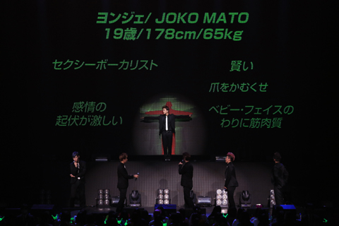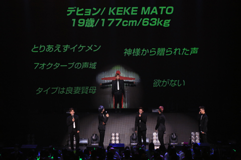 日本語についての話になると「(日本語は)6か月間ぐらい勉強しています。デヒョンさんと僕とヨンジェさんが日本語の担当です。ジョンアプさんとヨングクさんとゼロさんが英語を担当しています」と公演中も流暢な日本語でMCを務めていたヒムチャンが説明する場面も。 自分たちが世界から人気を集めている理由をどう思うか、という質問には、リーダーのヨングクが「僕たちがアピールできるのは、音楽的な部分だと思います。それと同時にステージのパフォーマンスです。他のK-POPアーティストとも違う、とてもタフで男っぽい面をたくさんお見せしているので、そういった点で差別化した魅力を感じていただけているんじゃないかと思います」と、コメントを寄せた。