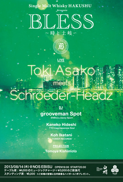 8月14日(水)に東京・NOS EBISUにてライヴ・イヴェント〈Single Malt Whisky HAKUSHU presents BLESS~時と土岐~〉が開催される。