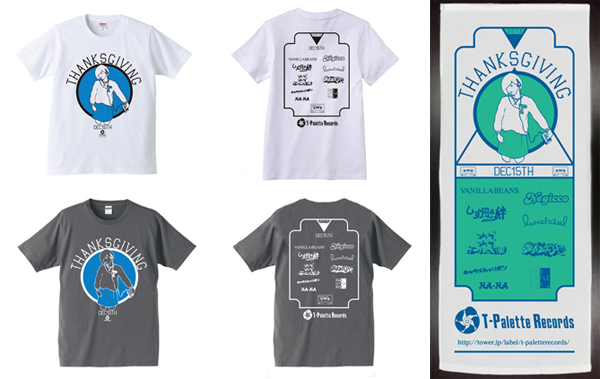 左から、〈T-Palette Recordsオリジナルグッズ〉Tシャツ、タオル画像