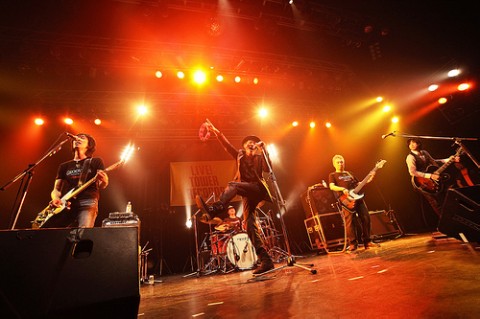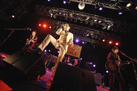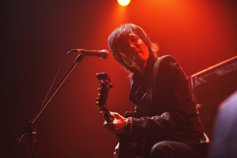 本編のラストは、ピート・タウンゼントのウィンドミル奏法のように腕をブンブンと振り回す藤井のダイナミックなストロークも飛び出したロックンロール・ナンバー“最後の煙草に火を点ける”でシメ。興奮冷めやらぬなかメンバーはステージを後にするものの、当然のようにアンコールが発生します。それに応えて再登場した彼らは「まだいたの!?」とトボけつつ、「残業手当出る!? それだったら...紹介しますマツキタイジロウ!」「酒抜けたかな...武藤昭平!!」とSCOOBIE DOのマツキ(ギター)と武藤をサプライズ・ゲストとしてステージへ招待。そして「天国のルー・リードに捧げます!」という宣言の後に、今年10月に逝去したばかりのルーが在籍したヴェルヴェット・アンダーグラウンドの名曲“Sweet Jane”の日本語カヴァーが炸裂! ルーの導きも手伝い、ロックな大人たちが一丸となってのパフォーマンスによってイヴェントは見事な大団円を迎えました。