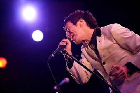早くも「お酒のおかわりください!」とのコールが飛び出るも(笑)、歌謡ブルースを思わせるメロディーに武藤のスモーキーなヴォーカルが映える“ダララ”や、彼が気持ち良さそうに歌う姿が印象的だった新曲“ワルチング・マルチダ”、語りかけるような唄が徐々に熱を帯びていく“スウィート・タウン”と展開する独特の世界は圧巻。お酒の入ったMCも絶好調です(笑)。「年をとるのも悪くないね」という説得力抜群のオトナ発言の後にボブ・マーリーのカヴァー曲“リデンプション・ソング”を披露し、オーディエンスのハンドクラップとのコラボレーションが生まれた“ブエナ・ビスタ”が歌われると、いよいよライヴはラスト・ナンバー“アミーガ・アミーゴ”に。またもギターを打楽器のように使いながらステージを練り歩く武藤と、一心不乱にベースをかき鳴らすウエノが紡ぐドライヴィンなグルーヴは絶品でした!
