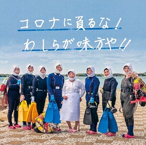 2017年エミー賞 旅・冒険部門受賞作品に出演した三重県鳥羽の海女さん達が、コロナで弱っている日本に元気をおすそ分け!特別写真集『コロナに負けるな!わしらが味方や!!』をプレゼント。新鮮な魚介類が購入できる〈海女小屋はちまんかまどお届け便AMA store〉(下記URL)もあわせてチェックを。(詳細はP.3)