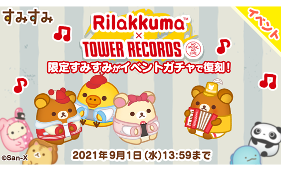 リラックマ×TOWER RECORDS 「限定すみすみ」がイベントガチャで復刻!!