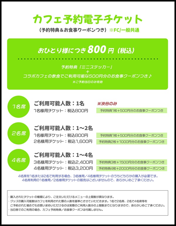 ※当日券には「お食事クーポン」「予約特典:ミニステッカー」は付属しておりません。あらかじめご了承ください。