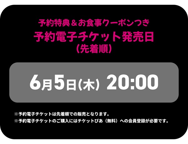 ※電子チケットの購入には手数料が発生します。お支払方法によって手数料が異なります。くわしくは利用料一覧(チケットぴあ)をご確認ください。