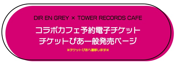 【DIR EN GREY × TOWER RECORDS CAFE】のコラボカフェ予約チケットは、販売開始日時よりチケットぴあにて販売いたします。