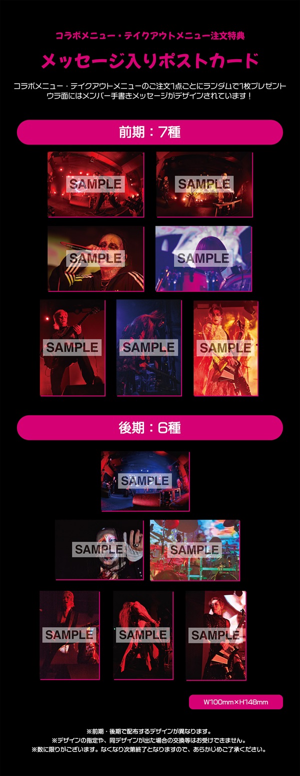 ※メニュー注文分ランダム3枚+3点セット注文分セレクト1枚、計4枚のメニュー特典ポストカードが獲得できます。