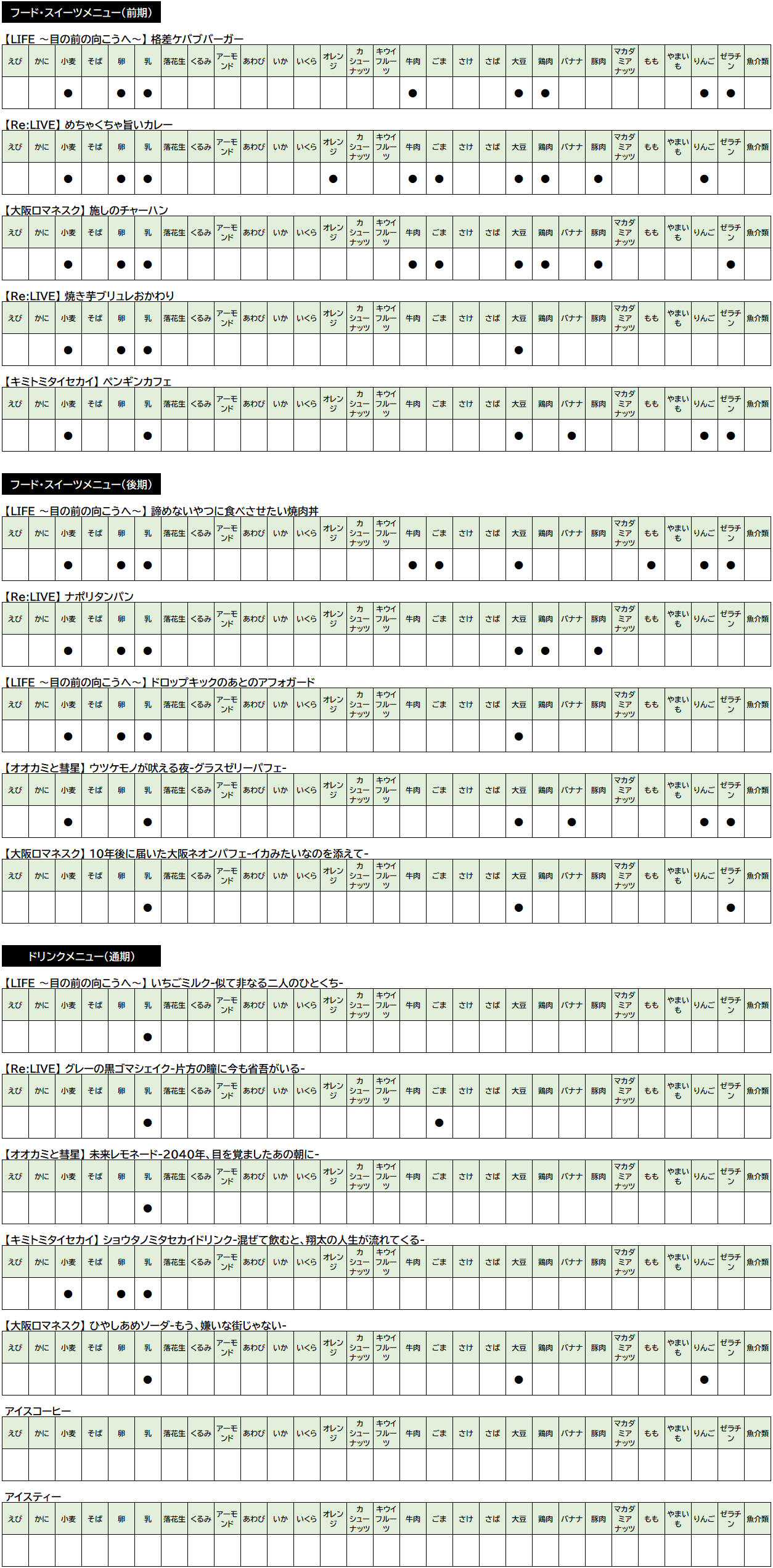 ・食材などのアレルギーをお持ちのお客様は、ご注文前に必ずカフェ店舗スタッフまでお問い合わせください。