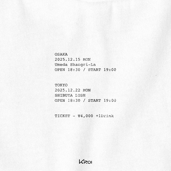 突如キー・ヴィジュアルと共にKroiのオフィシャルSNSで発表された本公演は、12月15日に大阪 梅田Shangri-La、12月22日に東京 渋谷LUSHで開催され、その内容や詳細については伏せられている。