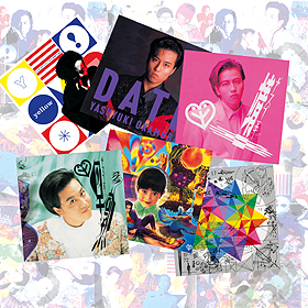 岡村靖幸のアルバムを紹介。上段左から、87年の『yellow』、88年の『DATE』、89年の『靖幸』、下段左から、90年の『早熟』『家庭教師』、95年の『禁じられた生きがい』(全てエピック)