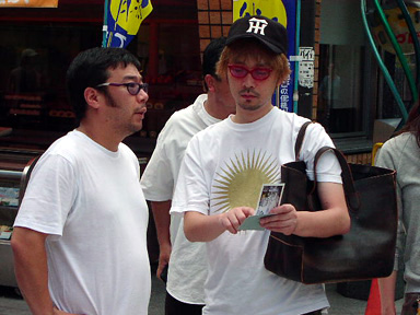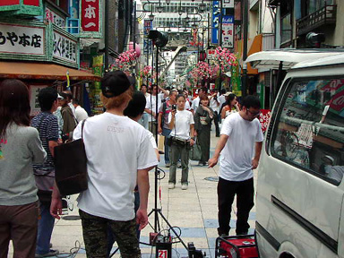 ポラを見ながら、打ち合わせ中。気が付いたら箭内さんはタイガースの帽子を買ってました(笑)。新世界のど真ん中で、ライトのセッティング中ですが、さすが大阪。次々に人が集まる、集まる。興味が無くなると「誰かわからん。」と言っていなくなってしまう辺りも大阪らしくてかなりイイです(笑)。