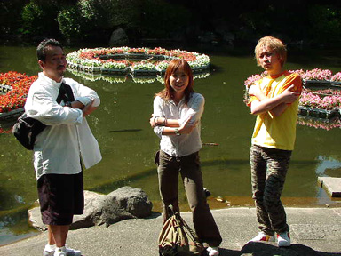 別に3人で困ってるワケじゃありません。B-BOY風にという指示でポラ・テストをしたら、こんなんなってました。この写真は事故です、完全に(笑)。