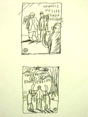 受験勉強中じゃありません(笑)。ディレクター箭内さんに、先月同様、平間さんと一緒にコンテ書け書けって言ってたら、渋々書いてました(爆)。このユルい感じが良いんですねぇ。