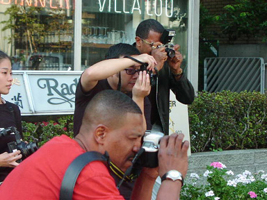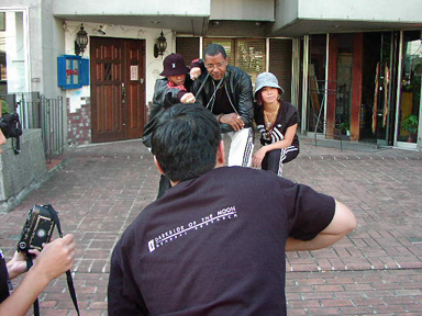平間さんの事務所を出て撮影場所に向かおうとする一行でしたが、なんと! SHABAZZさんは、事務所の前から早速撮影をスタート!本来は被写体のハズのSHABAZZさんが、SPHEREさん、AIさんにドンドン指示を出すもんだから、平間さんも気が抜けない(笑)。僕も含めてカメラを扱う人間がやたらいました。