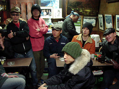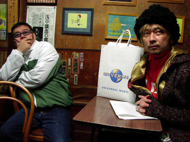 そうこうしているウチにハイロウズが到着。早速、さっき見ていた松浦さんのビデオを鑑賞してもらって、談志師匠を待ちます。ご紹介遅れましたが、カメラマン平間さん&ディレクター箭内さんの2ショット。箭内さんの帽子スゴすぎ。ロシア人??(笑)。
