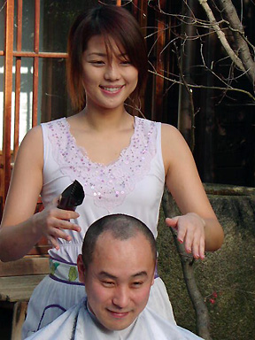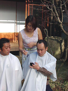 (15)(16)そして!実は二宮さんがバリカンを持参したとあって、ここで本当の散髪タイム到来!!吉岡さんにバリカンの使い方を教えて、本当にやっちまいました(笑)。当初、困惑していた吉岡さんも、段々乗ってきて「楽しい~♪」と大喜び。周りも大爆笑。最後には二宮さんもニコニコでポスター撮影初の散髪タイムは無事終了しました。