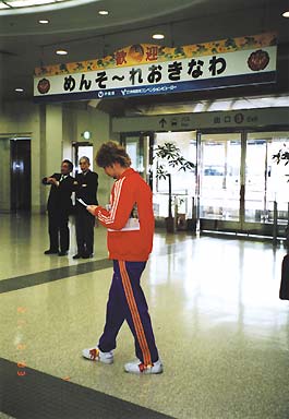 前日入りのスタッフとディレクター箭内さんで、平間さんを空港へお出迎え。なんと、平間さんは前日まで北海道の流氷の上で雑誌の表紙の撮影をしていたとか。1日で日本を縦断です。(2)(3)