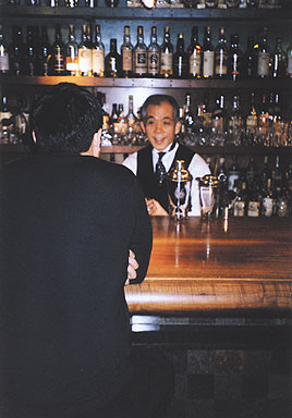 RADIOでの撮影終了。談笑中の平間さんと尾崎さん。実は平間さんはあまりお酒が飲めません。(そんな方の為に、尾崎さんはノンアルコールのカクテルも作ってくれるらしい)