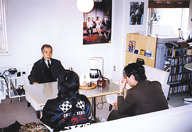 撮影場所移動。次はなんと平間さんのオフィスのビルの屋上。出迎えてくれたのは3月に平間さんの故郷から来たばかりの「ピッピ」。大勢の撮影隊にちょっと興奮気味。準備中、大阪のBARの話で盛りあがる。ちなみに尾崎さんのお勧めは、堂島の「サンボア」と「ロイヤルホテルのリーチバー」との事。