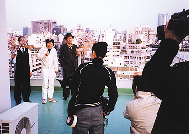屋上では、桜の枝を持っての撮影。大西さんは、「これバース!」「これ掛布!」と次々に野球選手のバッティングポーズの真似を始める。ステージ上で良く言っている「声出していこうゼ!!」ってこういう事?。 隣で、尾崎さん「キャバレーの呼びこみに見えませんか…」と、ポツリと一言。