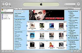 iTunes Music Storeは、MacOS用のプレイヤーソフト「iTunes 4」を使って、5大メジャーレーベルが提供する約20万曲をダウンロード販売するサービス。他のサービスと比較してコピー制限が非常に緩く、CD-Rにはいくらでもコピーできるし、iPodという最強の携帯プレイヤーが使える魅力もある。