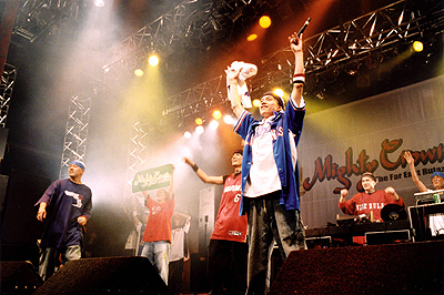 ……実はこの段階で文字数を大幅オーバーしていまして、とってもコワ~いbounce.comのH君が怒るとヤバいので、あとは泣く泣くダイジェスト版で(大ウソです)。PUSHIMはDABOを引き連れて(!!!!)シングル“Dancehallic”収録ヴァージョンの“I Wanna Know You”を披露。続く“Forever”でウレシそうにニコニコ笑ってるDABOがヨカったなぁ! RYO the SKYWALKERは〈Freeの意味は誰が決める/なせばなんにだってなれる〉というリリックが泣ける“Free”を。いやー、そのとおりだぜ、まったく! その後出てきたのはPAPA UG!! H-MAN!! BOY-KEN!! ZEEBRA!! NANJA MAN!! YOYO-C!! 応援に駆け付けたJAM TEKなどのサウンドシステムもヤバかったなぁ。で、繰り返しますがもうベロベロに酔っぱらっていたので、出演者はこれだけじゃないハズ(ゴメン……)。