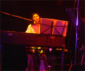 トップ・バッターはtica。エマーソン北村、東京スカパラダイスオーケストラのNARGOらをゲストに迎えて、新作『latest rules』と9月発売予定の次作『morelatest rules』からの曲を中心にしたダビーな構成。緩急のメリハリがついた好演を見せてくれた。続いては、クラムボンの原田郁子が登場。これが初のソロライヴとなる彼女は、ticaに引き続いての演奏となるエマーソン北村との共演という形で舞台に立った。小沢健二“大人になれば”のカヴァー(絶品!)からスタートし、台湾映画『藍色夏恋』に書き下ろした曲“風色夏恋”など5曲を披露。初めこそ照れと緊張が見られた原田だったが、演奏と共に徐々に開放度が増し、終わる頃には会場全体を笑顔に包む込むような、そんなほんわかとしたステージを展開した。欲を言えば、もう少し長く聴きたかったような……。