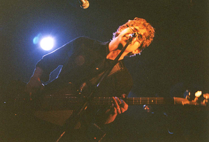 そしていよいよ、この日のメインとなるフォーク・インプロージョンが登場。ルー・バーロウ本人がセッティングの段階から登場し、いい具合にゆる~いムードが場に充満していく。が、2曲を弾き語りで演奏した後、残り2人のメンバーが登場すると、それまでの弛緩した雰囲気が一変した。しょっぱなからこれでもかというくらいヒリヒリしたバンド・サウンドで聴衆を引っ張っていく。新メンバーが加わったことで、前作までのどこか内省的で脱力感を感じさせるサウンドはすっかり影をひそめ、シンプルでマッチョな力強さを感じさせるバンドへと変貌していたのだ。まさに新作タイトルどおりの〈新生フォーク・インプロージョン〉を体現する音だった。アンコールを含んだ全23曲を、テンションをキープしたままで演奏(ルー・バーロウが、ギターのイマード・ワシフを肩車しながら演奏するという場面も)。非常に濃厚な時間を味わうことができた。