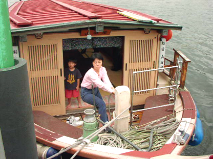 最初の撮影場所となったのは、言問團子桟橋の屋形船「山田屋」さん。屋形船にも名前があるんですね。で、こちらが運営されてるご家族です。