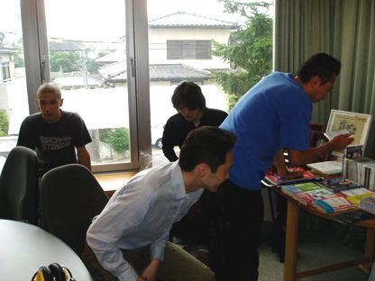 AUDIO ACTIVEのメンバーが到着。音響の本を見つけて、それぞれ手にとって撮影の時間まで読書中。