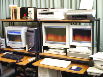 次は機材を使っての実習風景を撮影。モニターで音響について説明を受ける様子をデスクの下から撮影するカメラマン平間さん。AUDIO ACTIVEの音を流して解析しながら「ここが大好き」と熱っぽく語る所長さんに本人達が照れる場面も。AUDIO ACTIVEメンバーも質問をする熱中ぶり。