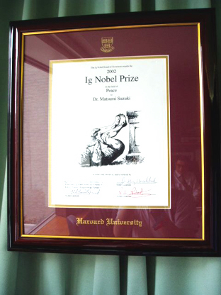 AUDIO ACTIVEは10/4リリースのアルバム「Back to the Stoned Age」が秀逸な作品と評判。音響研究所長さんも大絶賛でした。写真は研究所に飾られていた「イグノーベル賞・平和賞」の額。ノーベル賞の"ユーモア"版で、人間と動物の共存で"平和"に貢献した<バウリンガル>に贈られた世界的な賞とのこと!