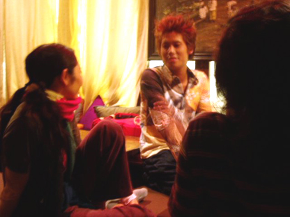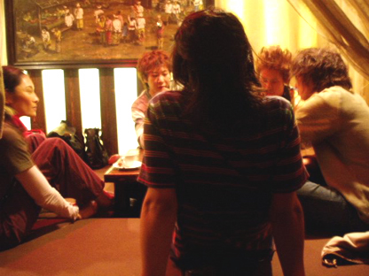 その頃、お店ではTHE BACK HORNの面々と小島さんの懇親会が開かれておりました。話題は音楽から政治の話まで!「話すとき顔が見えないと嫌」とギターの菅波さんが小島さんの隣に移動したりして、座る距離が縮まるにつれて小島さんもリラックスした笑顔に。