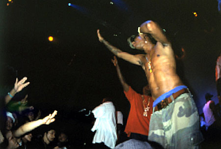 深夜12時過ぎに会場に到着したときには、すでに会場は超満員。A BATHING APE10周年の記念パーティということで、メディアを賑わすセレブの姿もチラホラと見かけられた。フロアからVIPルームを羨望の眼差しで見上げるヤングな諸君に幸あれ、なんてことを思いながら、事前に告知のなかったネプチューンズのパフォーマンスがどんなモノになるのか? 思いを馳せる。