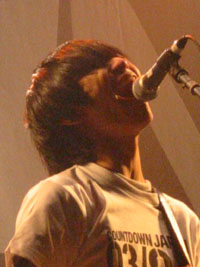 足:いや藤巻くんの顔見るとどうしても新日の柴田を思い出しちゃうんだけど、けっこうね、勝手な心配をしてたんですよ、広いEARTH1だし、この時間だし、ましてや氣志團の後でしょ? K-1の天田戦のような気持ちで観てたんだけど蓋を開けてみれば会場はいっぱいだし、じつに堂々たるステージングでさ。やっぱりちょっと緊張してたのか表情は硬いんだけど、一語一句、一音一音何かを確かめ合うような感じのすごくいい演奏だったし。1曲目が“追いかけっこ”だったせいもあって静かな雰囲気の出だしだったんだけど、次第にあったまってきて、“電話”“雨上がり”の頃にはもう、ちょっとこみ上げてくるものがあった。最後アンコールの新曲“3月9日”で再び静かに幕を下ろした、って感じなんだけどそこはもう祭りのあとの余韻を噛み締めるように。ライヴの締めとしてもフェス全体としても最高のフィナーレだったんじゃないかな。