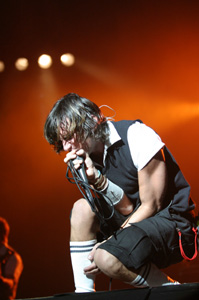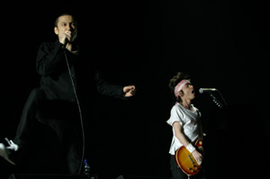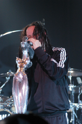今回の出演者のなかでも、やはりエヴァネッセンスは異彩を放っていた。次のコーン目当ての客が前に詰めかけていたために一時はどうなることかと思いきや、反応は上々だったようだ。もっとも来日公演の初日でエイミーの歌が上手くなっているのは歴然としていただけでなく、新加入のテリーとの呼吸もぴったりということで、ベン脱退の痛手は微塵も感じられなかった。今回もミステリアスな“Haunted”で始まり、“Going Under”に続くという流れで、場内はヘヴィーでダークな世界一色に染まっていく。大ヒット作『Fallen』の楽曲が次々に演奏されていき、後半にはスマッシング・パンプキンズ“Zero”のカヴァーにも挑む。とくにピアノ弾き語りで臨んだ“My Immortal”での汚れなき歌には心を大きく揺さぶられた。なによりも、歌っている時の表情が実に豊かなのがいい。やがて弾き語りのまま“Bring Me To Life”が始まり、そこにバンド・サウンドが加わると当時に場内のヴォルテージは頂点に達する。その後、数曲を挟んで“Whisper”でジ・エンド。荘厳な空気が漂うなか、深々とおじぎをするエイミーの姿がいまも忘れられない。