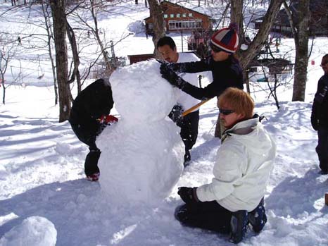その頃、先にスキー場に行った撮影スタッフが、あとで使う雪だるまのベース作りを開始。