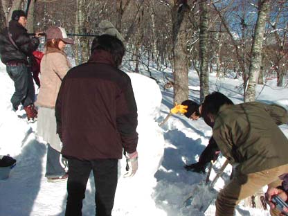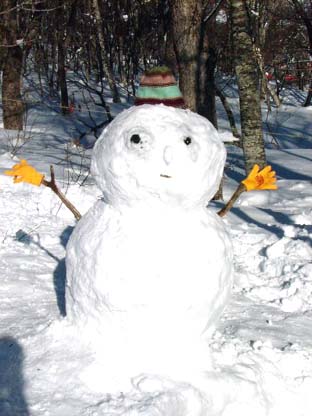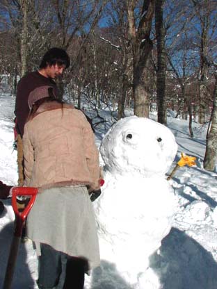 次は<雪だるま作り>。炭、枝、タワレコ軍手と、スタッフがかぶっていた帽子が材料に!SUPERCAR全員で飾りつけて出来あがった雪だるまは「カワイイ!」と大好評。